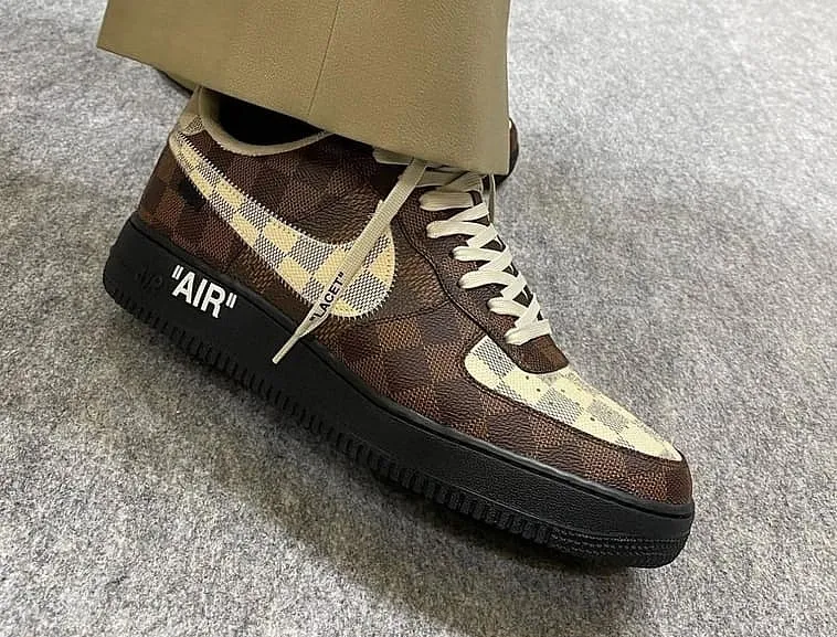 - Air Force 1 x Louis Vuitton – коллекция, выпущенная совместно с Вирджилом Абло, соответствует традиционному стилю бренда: украшения в виде фирменных логотипов и классическая расцветка Луи Виттон сразу выделяют эти модели среди других;